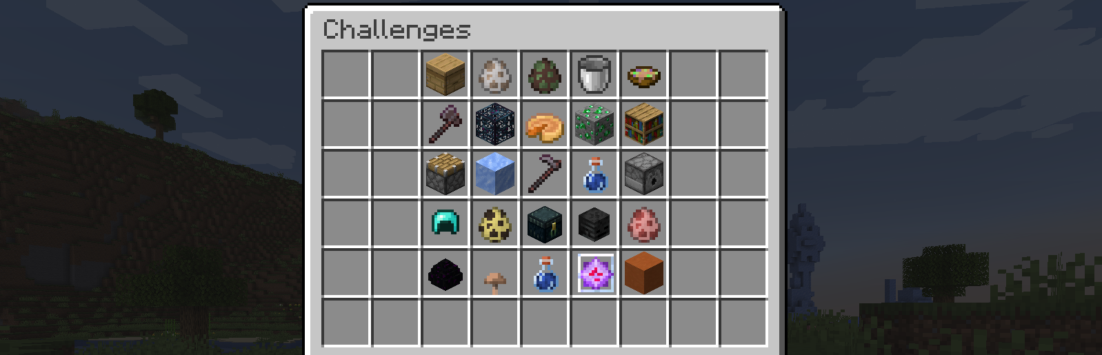 This project is a plugin for Spigot servers that adds specific challenges to be completed in Minecraft survival. Challenges range in difficulty and in type, but they all award equal points. The winner of the game is the first team to reach 13/25 points.